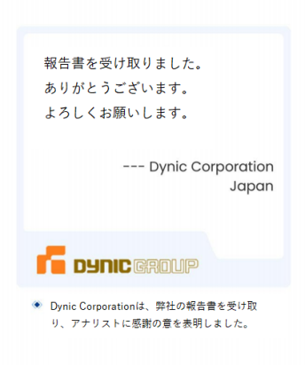 「PDF形式の報告書を受領しました。迅速な対応に感謝いたします。」