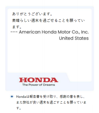 「報告書を受け取りました。ありがとうございます。よろしくお願いします。」